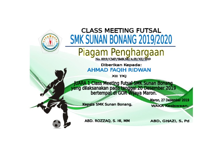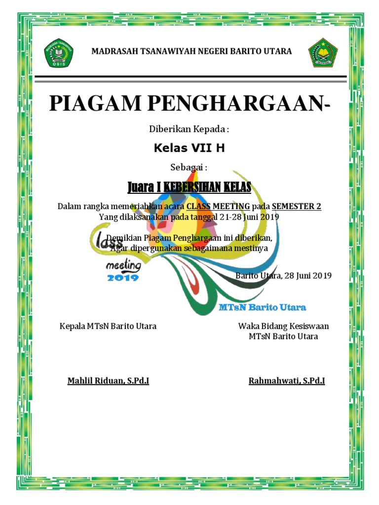 Piagam Penghargaan Class Meeting Sementara Pdf